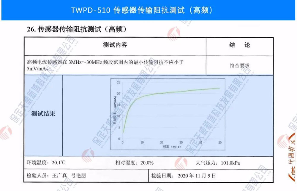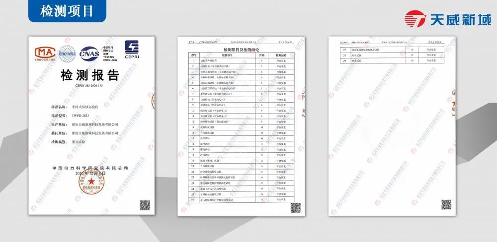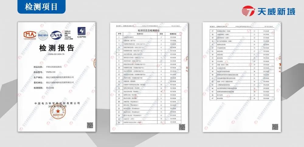 2020年公司對(duì)產(chǎn)品進(jìn)行了進(jìn)一步改進(jìn)升級(jí),已批量生產(chǎn)的TWPD-510手持式局部放電巡檢儀、TWPD-2823手持式局部放電巡檢儀,隨機(jī)抽樣送中國(guó)電力科學(xué)研究院進(jìn)行檢測(cè)和型式試驗(yàn),其中TWPD-510手持式局部放電巡檢儀檢測(cè)項(xiàng)目47項(xiàng)、TWPD-2823手持式局部放電巡檢儀檢測(cè)項(xiàng)目29項(xiàng),檢測(cè)結(jié)論證明我司產(chǎn)品性能指標(biāo)滿足相關(guān)標(biāo)準(zhǔn)。