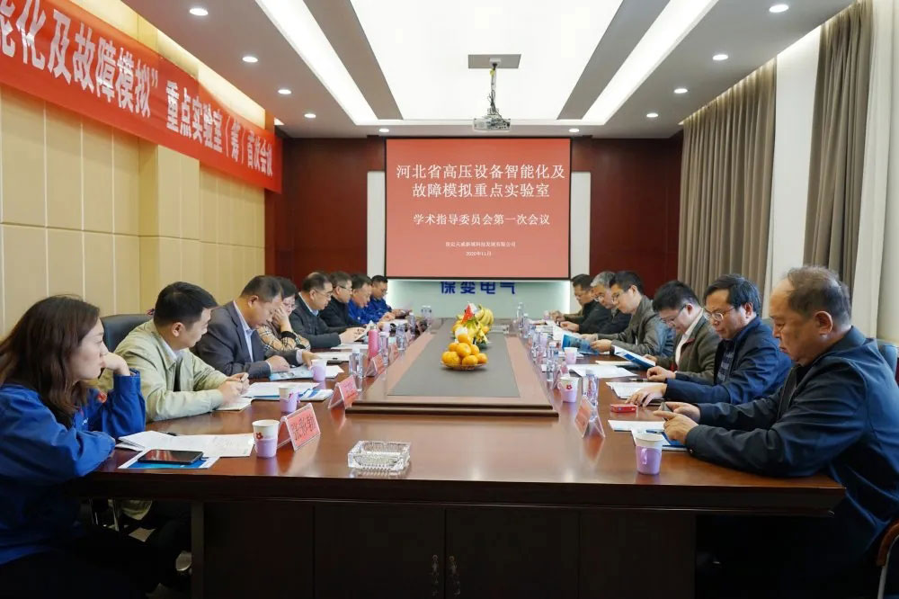 天威新域召開河北省高壓設備智能化及故障模擬實驗室會議。學術指導委員會主任畢建剛、學術指導委員劉云鵬、岳國良、霍利民、高樹國、王永清、張俊杰和保定市科學技術局副局長徐春齊、平臺處副處長張新民、高新區(qū)科技服務局王堅受邀出席會議。保變電氣黨委副書記、天威新域董事長劉東升、保變電氣輸變電技術研究院院長杜振斌、天威新域總經理兼總工程師何平、黨支部書記兼副總經理張彩勃等人員參加會議。