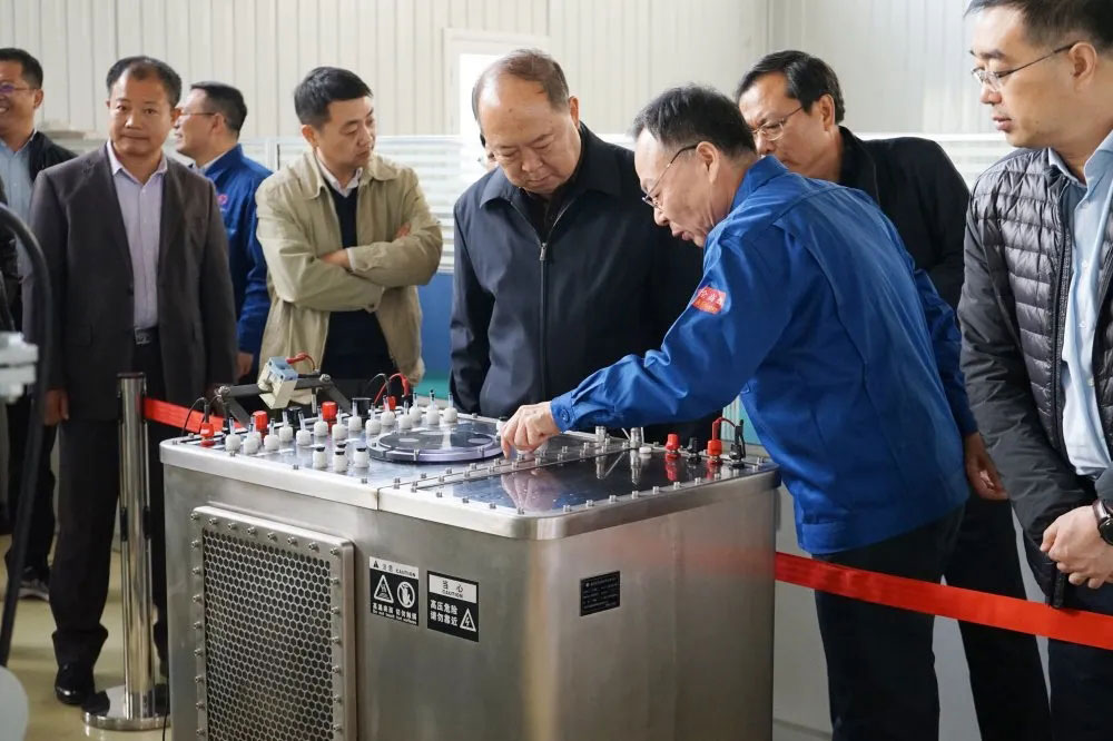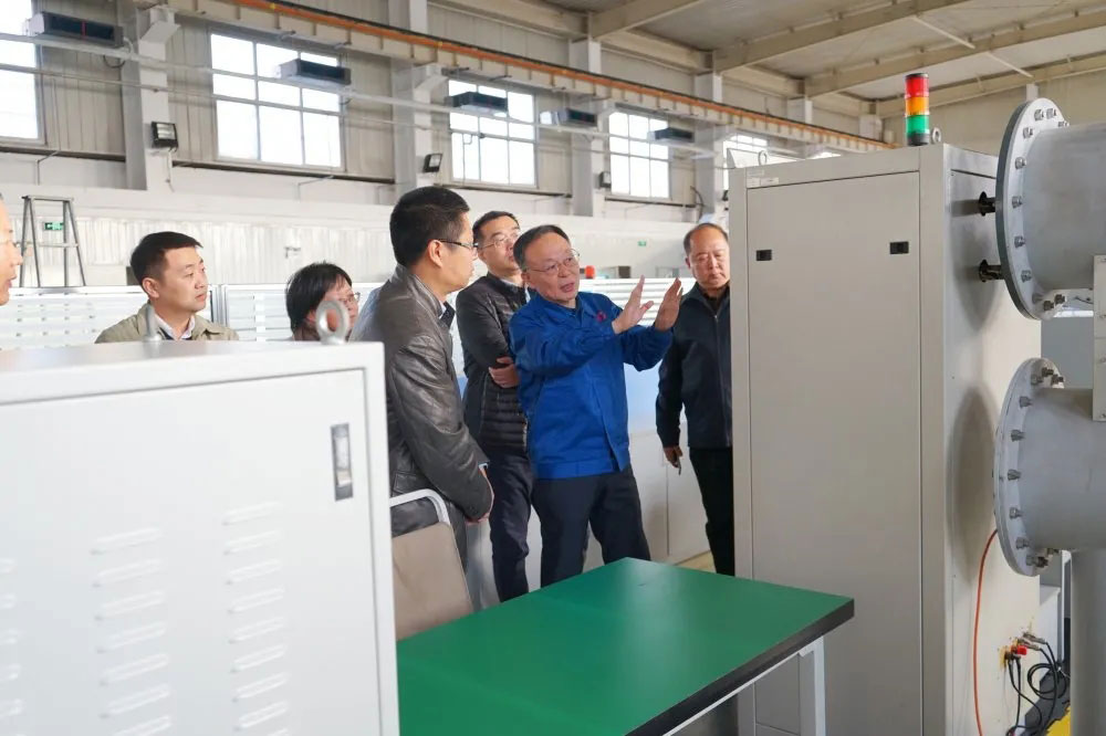 會議期間,天威新域總經理兼總工程師何平帶領市、區(qū)科技主管部門領導及學術指導委員會專家團隊參觀實驗室。