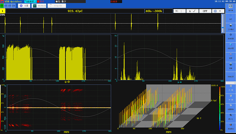 (7)具有幅值檢測、相位圖譜檢測、脈沖圖譜檢測、脈沖時頻分離圖譜、波形圖譜檢測、PRPD圖譜以及PRPS圖譜功能。