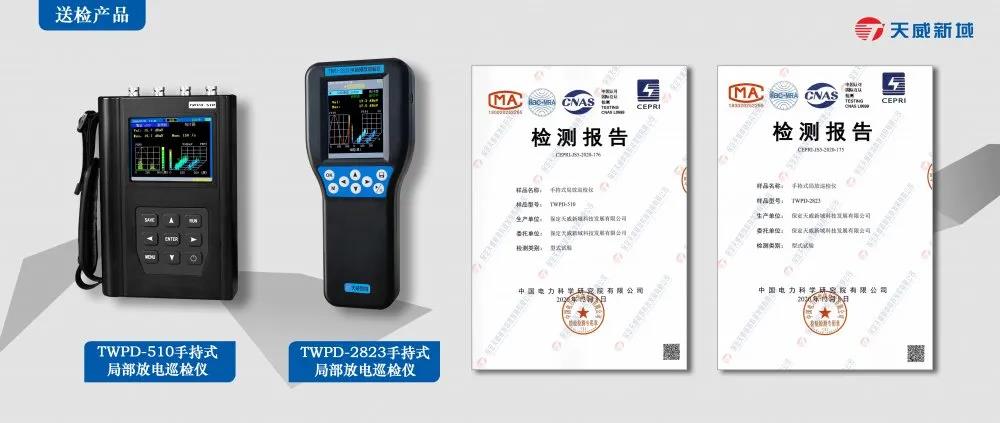 2020年公司對(duì)產(chǎn)品進(jìn)行了進(jìn)一步改進(jìn)升級(jí),已批量生產(chǎn)的TWPD-510手持式局部放電巡檢儀、TWPD-2823手持式局部放電巡檢儀,隨機(jī)抽樣送中國(guó)電力科學(xué)研究院進(jìn)行檢測(cè)和型式試驗(yàn),其中TWPD-510手持式局部放電巡檢儀檢測(cè)項(xiàng)目47項(xiàng)、TWPD-2823手持式局部放電巡檢儀檢測(cè)項(xiàng)目29項(xiàng),檢測(cè)結(jié)論證明我司產(chǎn)品性能指標(biāo)滿足相關(guān)標(biāo)準(zhǔn)。